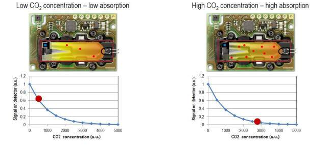 传声器信号然后用于测量测量单元中的CO2分子数量,并可用于计算CO2浓度。